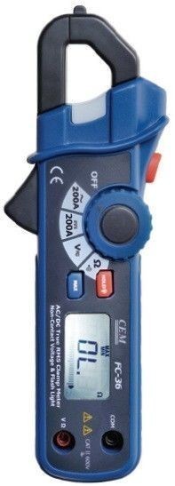 Токовые клещи CEM FC-36 предназначены для измерения постоянного и переменного тока до 200А. Также клещи имеют бесконтактный детектор напряжения и фонарик. Прорезиненный ударопрочный корпус обеспечивает защиту прибора от различных механических повреждений. Ударопрочная защищенная конструкция позволяет прибору работать в жестких условиях эксплуатации. Эргономичный и современный дизайн имеет подставку-упор для удобного вертикального расположения. Компактные токовые клещи FC-36 предназначены для использования как внутри помещений, так и снаружи.