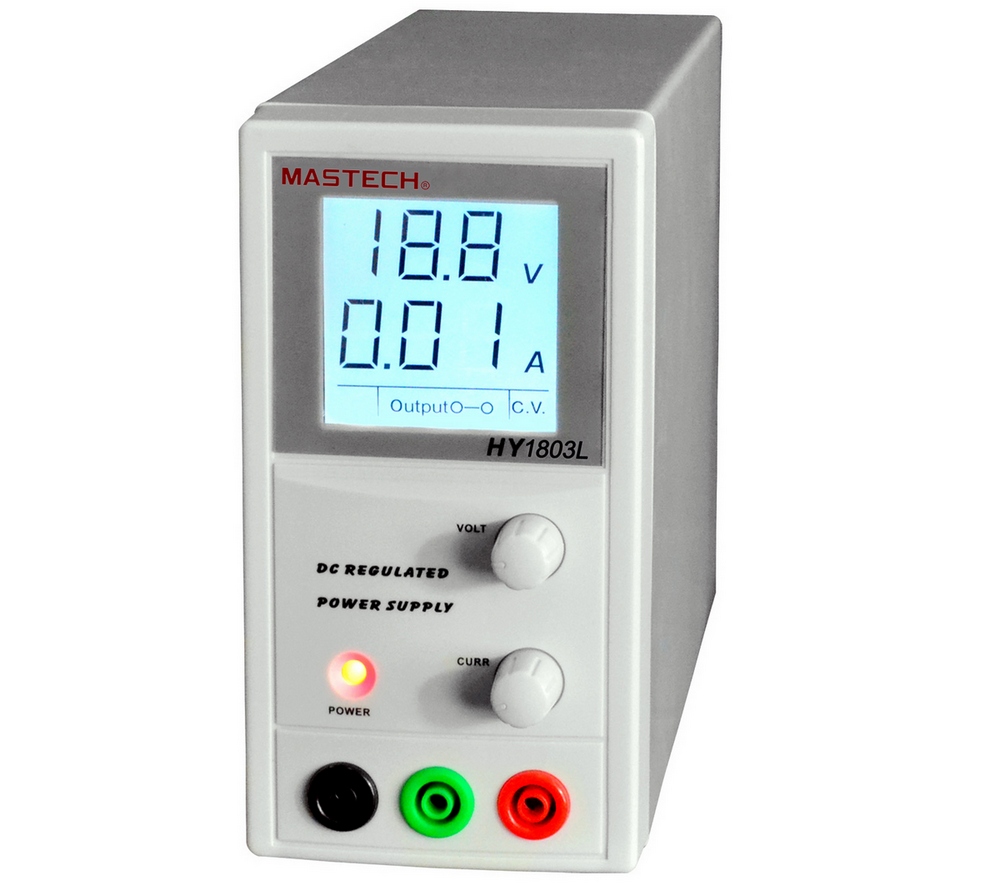 Прибор Mastech HY1803L представляет собой высокостабильный лабораторный регулируемый источник питания постоянного тока, допускающий плавную установку уровней и выходного напряжения и выходного тока. Имеет жидкокристаллический дисплей с двумя цифровыми индикаторами.