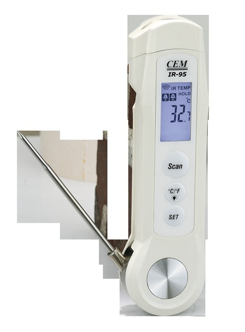 IR-95 Данный прибор представляет собой инфракрасный термометр, оснащенный измерительным зондом (датчиком). Он позволяет измерять температуру поверхности и внутреннюю температуру объекта.
