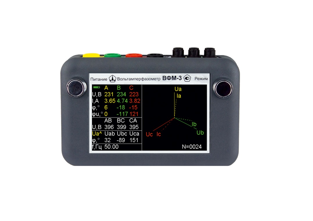 Вольтамперфазометр ВФМ-3 предназначен для одновременного измерения действующего значения трех фазных и трех линейных напряжений, силы переменного тока в трех цепях с одновременным вычислением активной, реактивной и полной мощностей в цепи, измерения частоты, угла сдвига фаз между фазными и линейными напряжениями, между токами и напряжениями, а также вывода векторной диаграммы напряжений и токов в трехфазных системах.